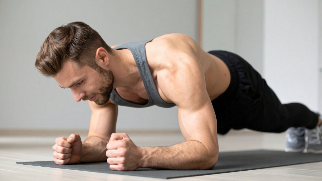 プランクなどの体幹トレーニングでは、肘や手で床を押す動作が多くなりますが