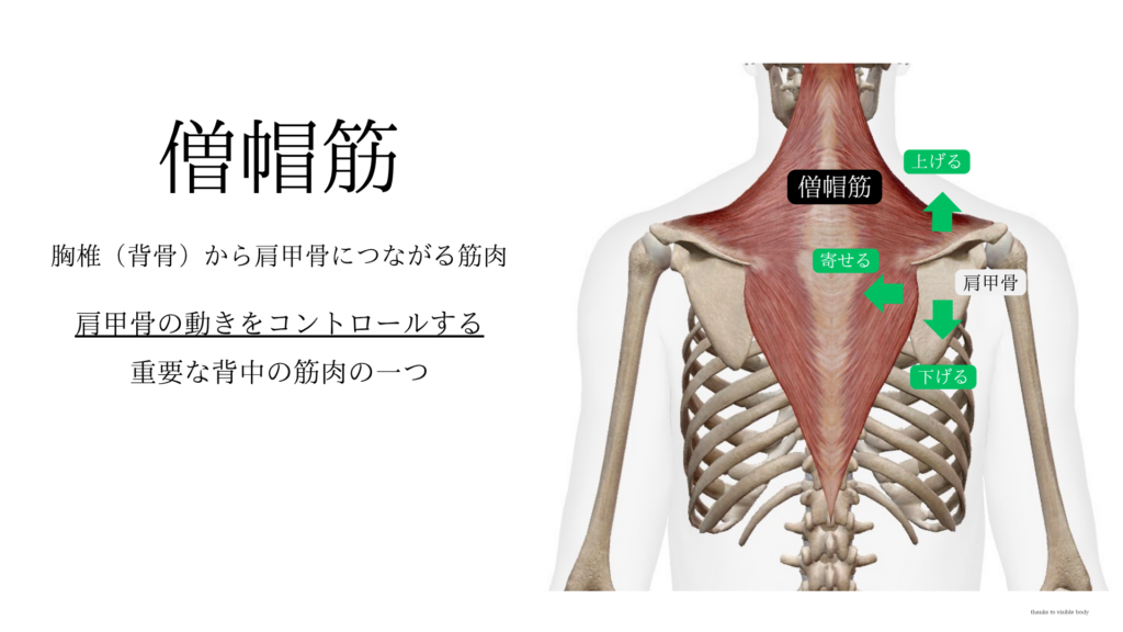 僧帽筋は肩甲骨を動かす主要な筋肉の一つ